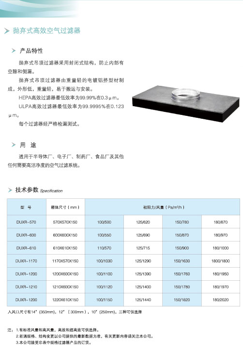 抛弃式高效空气过滤器