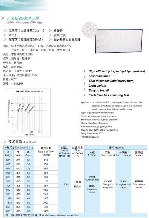 > 无隔板高效过滤器